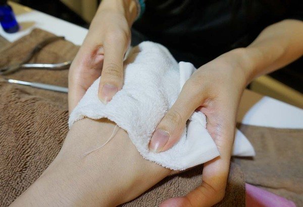 接著用溫溫的毛精熱敷一下......等等要來準備上光療囉