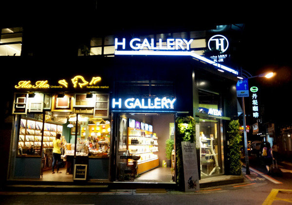 經過公園就會看到亮晶晶的H GALLERY 招牌了說