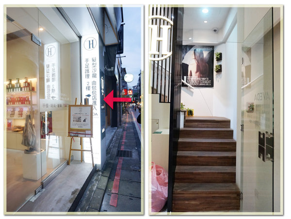 他的沙龍美髮和手足保養在二樓,所以要從旁邊31-1號的包包店進去上二樓